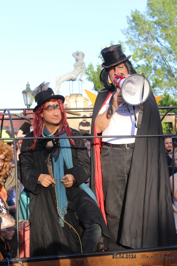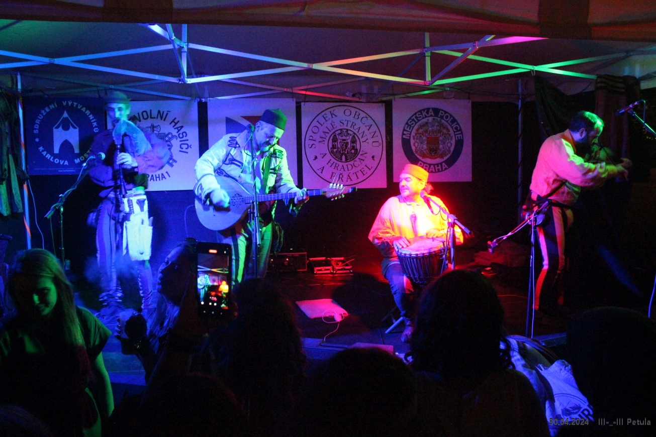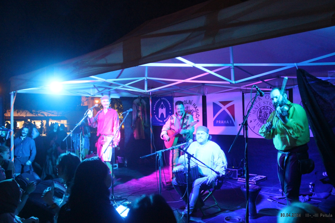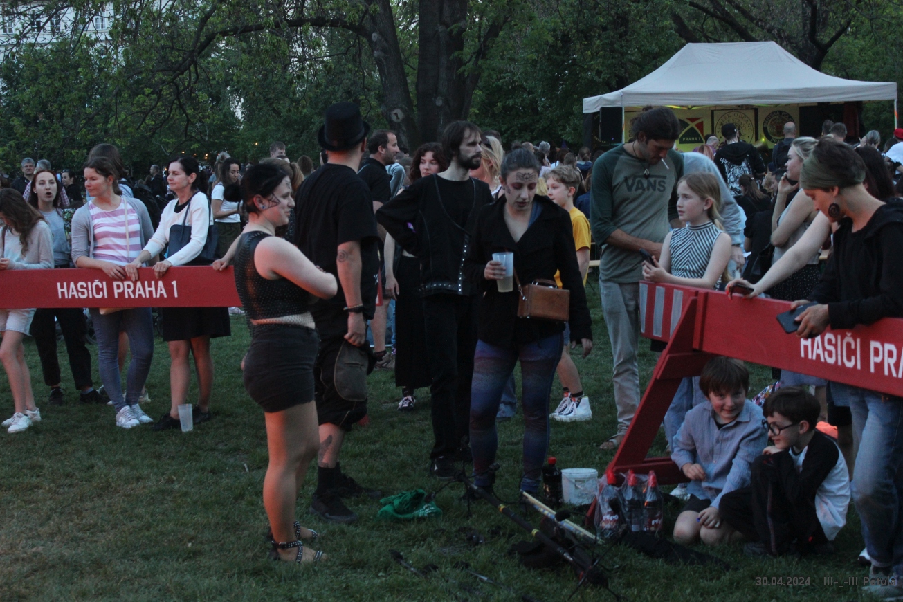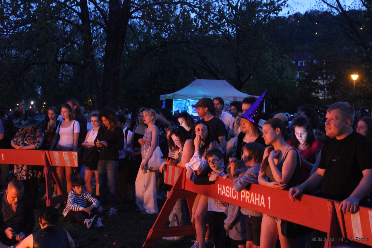 Program začal odpoledne na Malostranském náměstí, odkud vyrazil tradiční čarodějnický průvod. Ten vedl úzkými uličkami historické čtvrti směrem na Kampu a vytvářel veselou atmosféru plnou masek a hudby. Průvod symbolicky zahájil hlavní část večerních oslav.