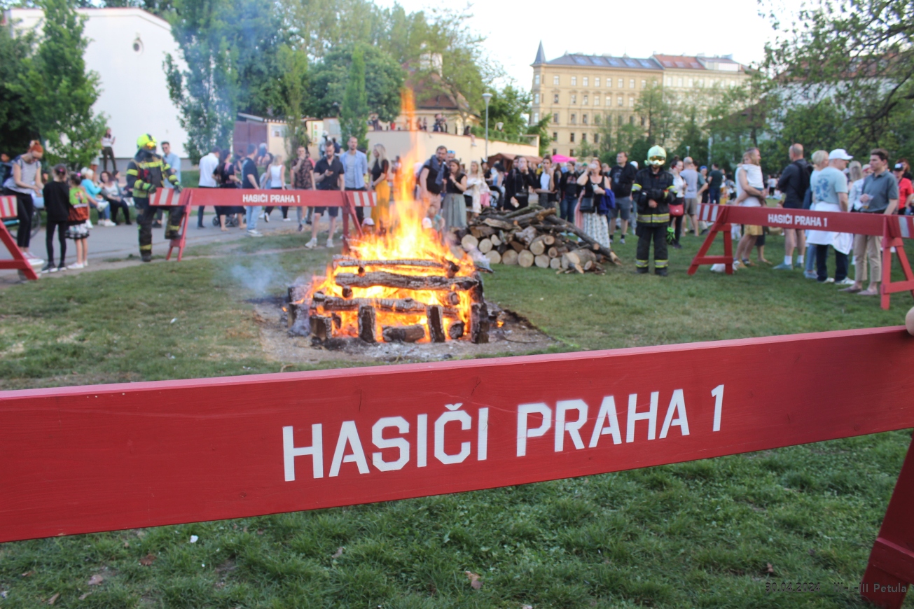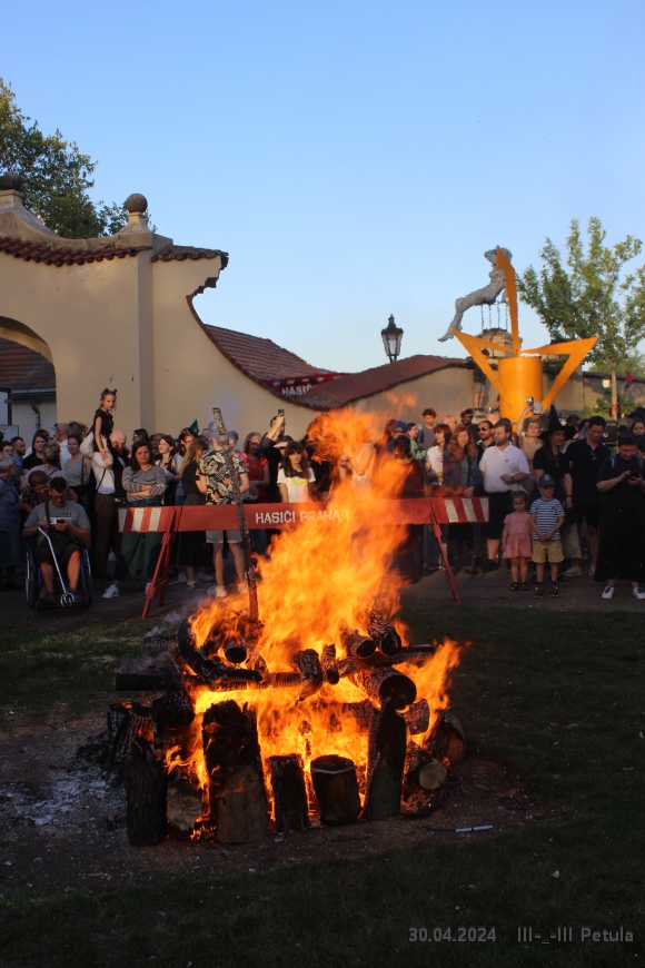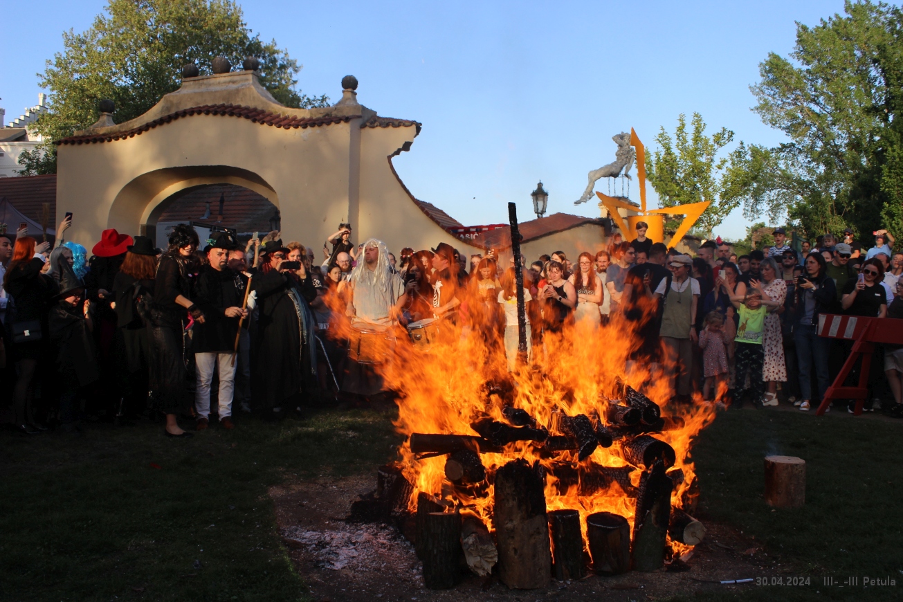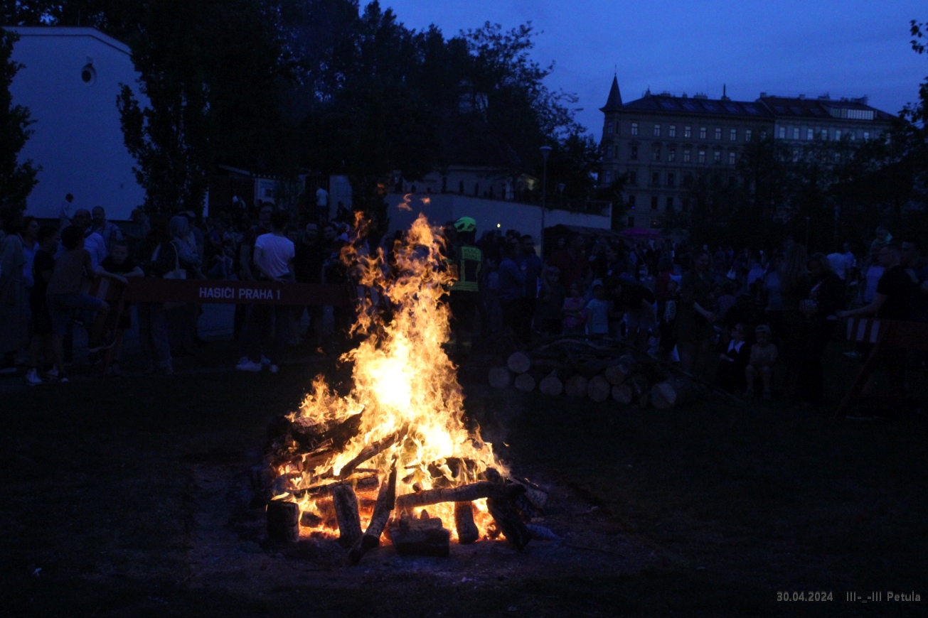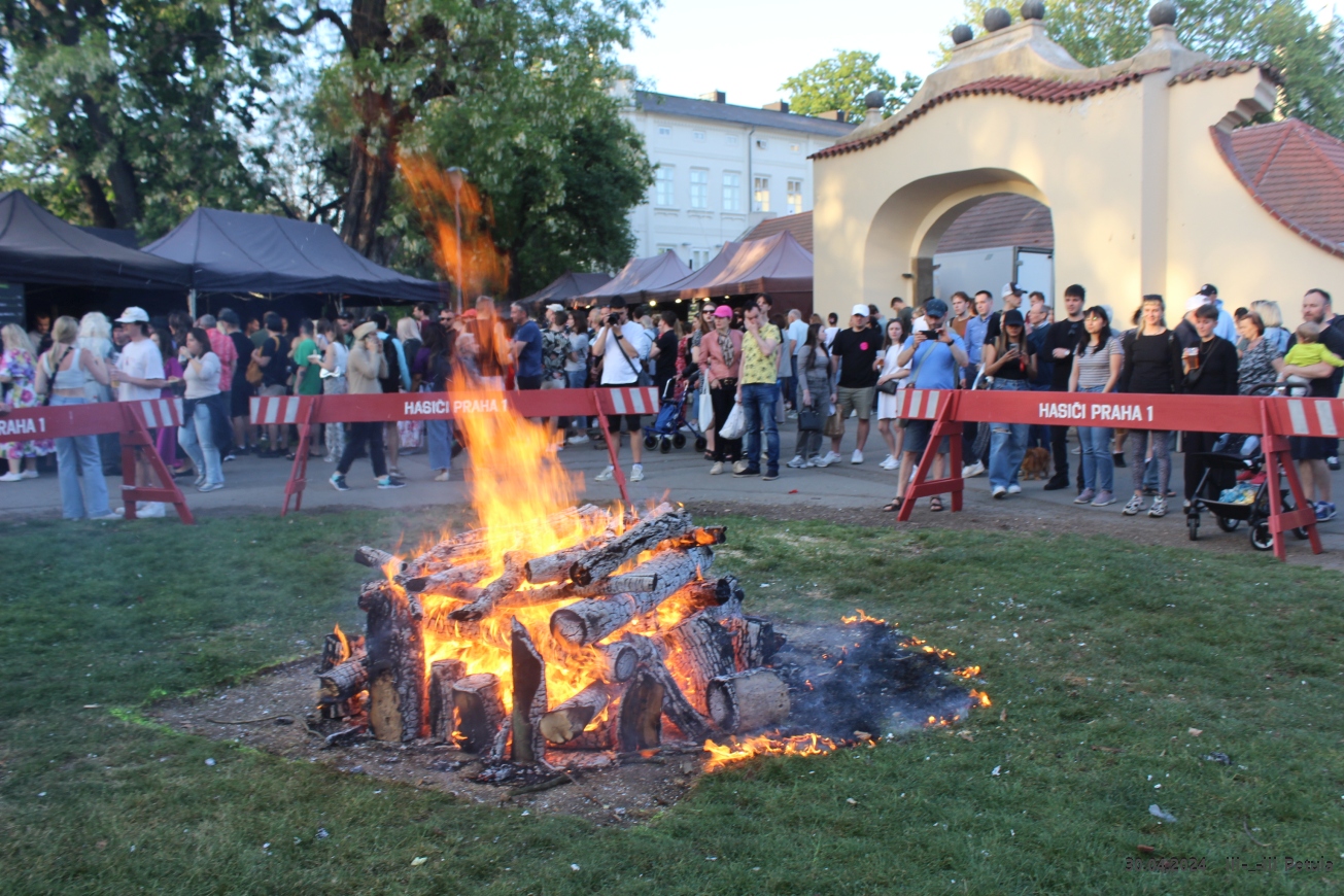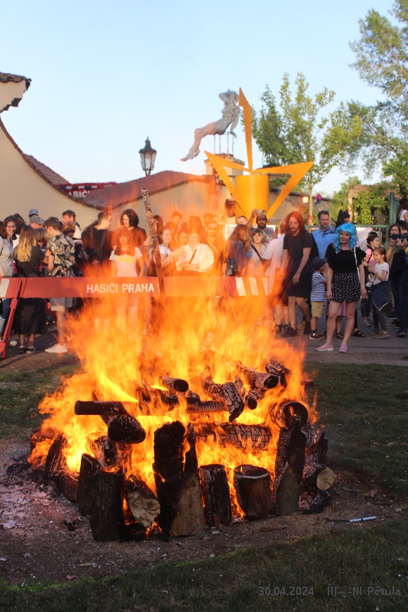 Večer vyvrcholil okolo 19*00, kdy byla ve Kampě zapálena hranice čarodějnice.