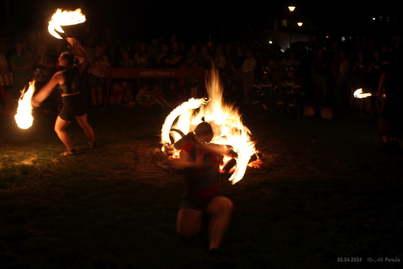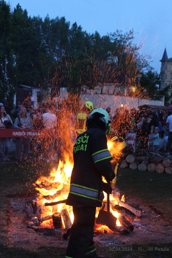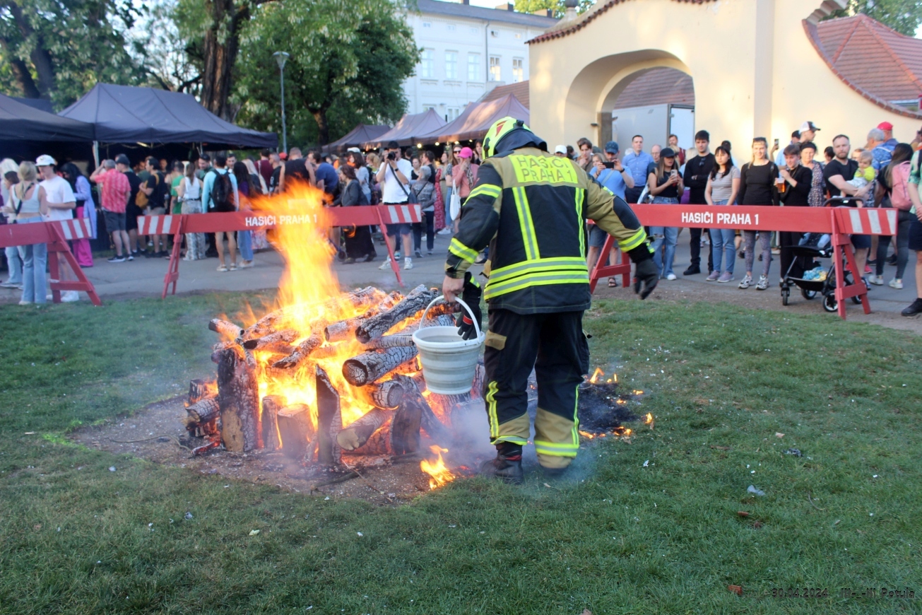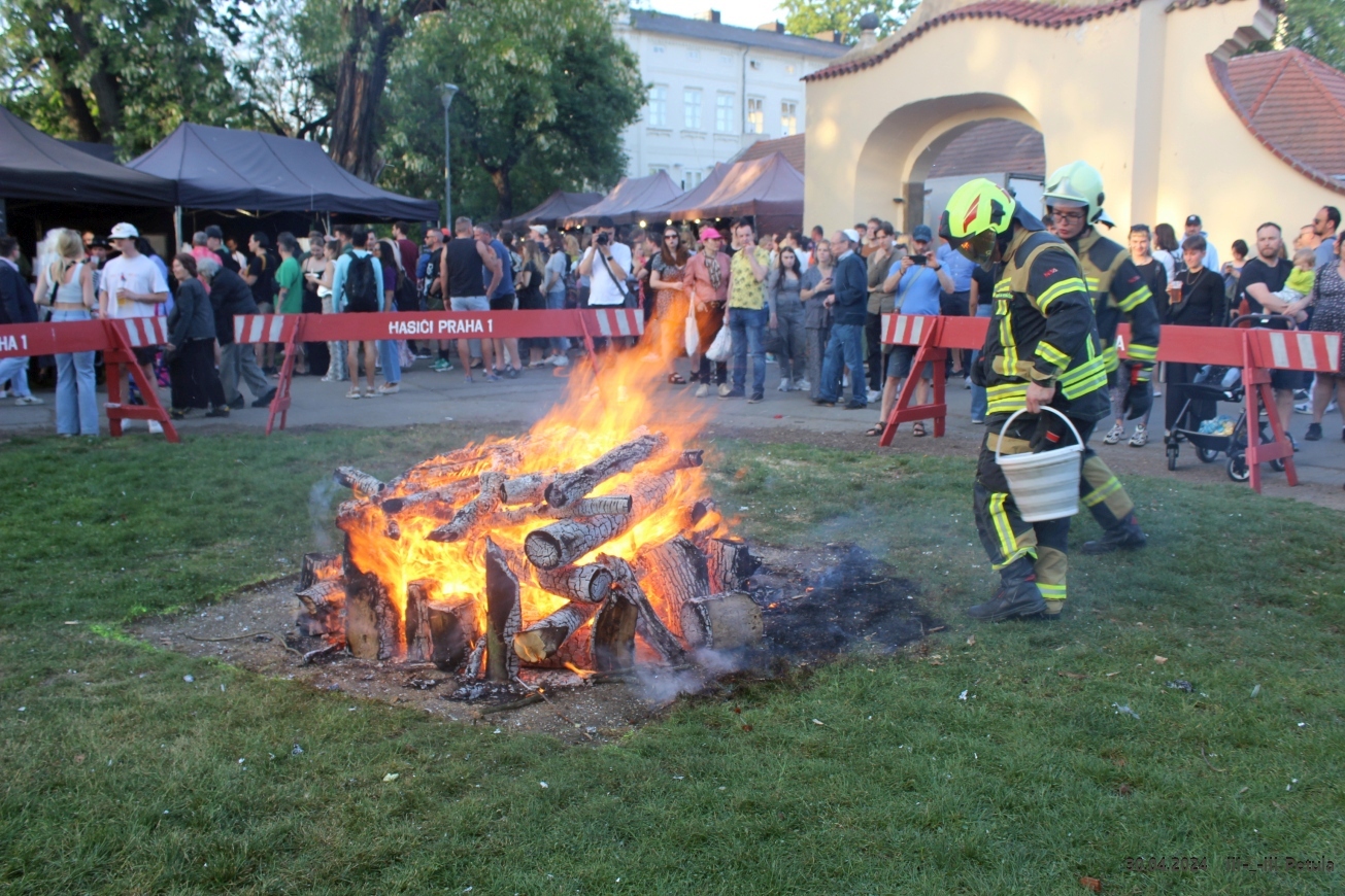 Večer vyvrcholil okolo 19*00, kdy byla ve Kampě zapálena hranice čarodějnice.