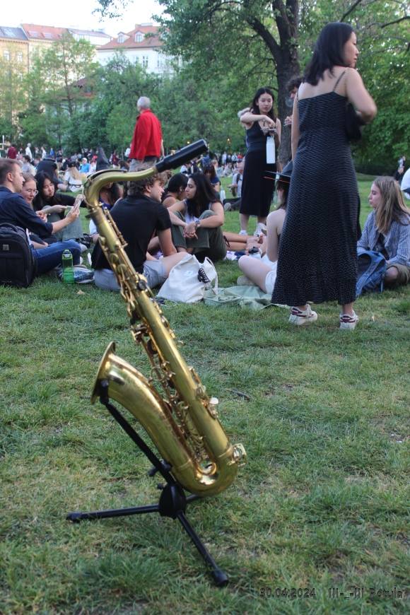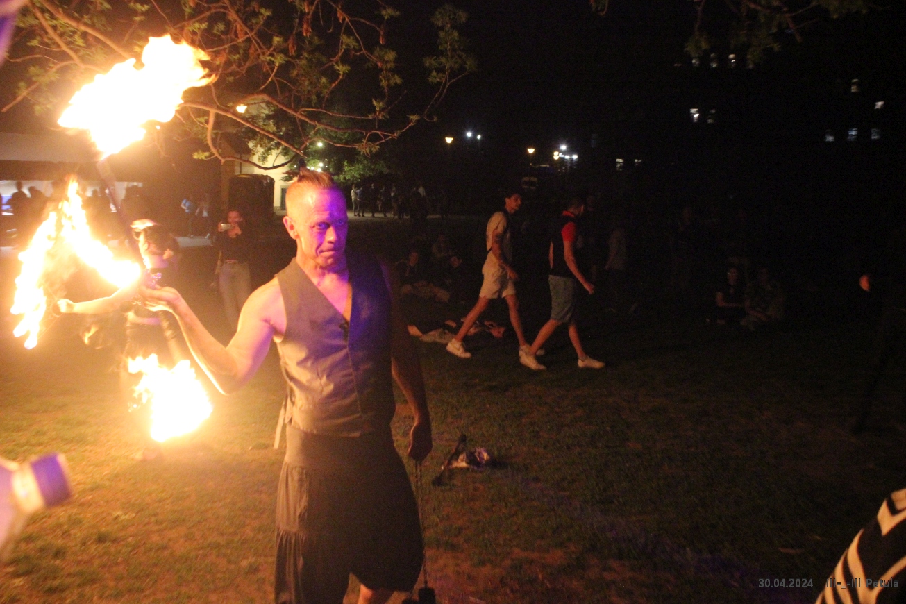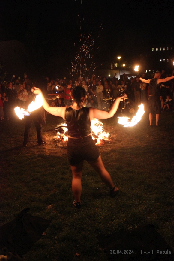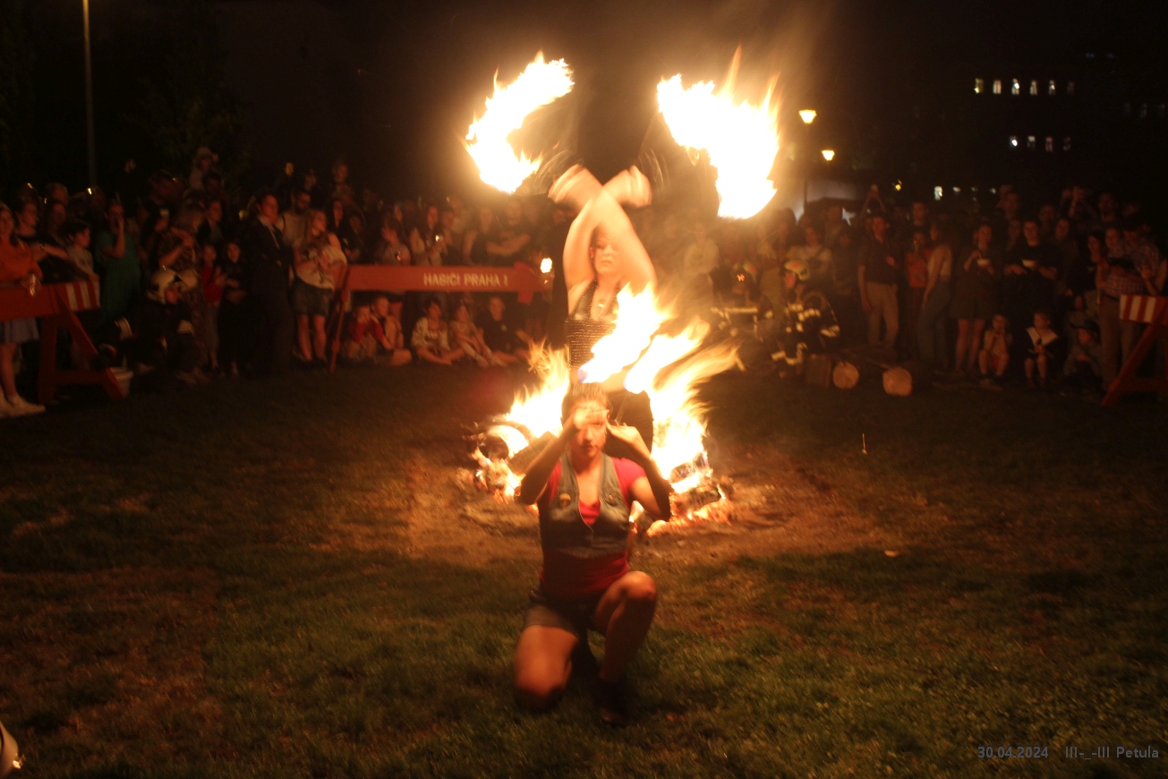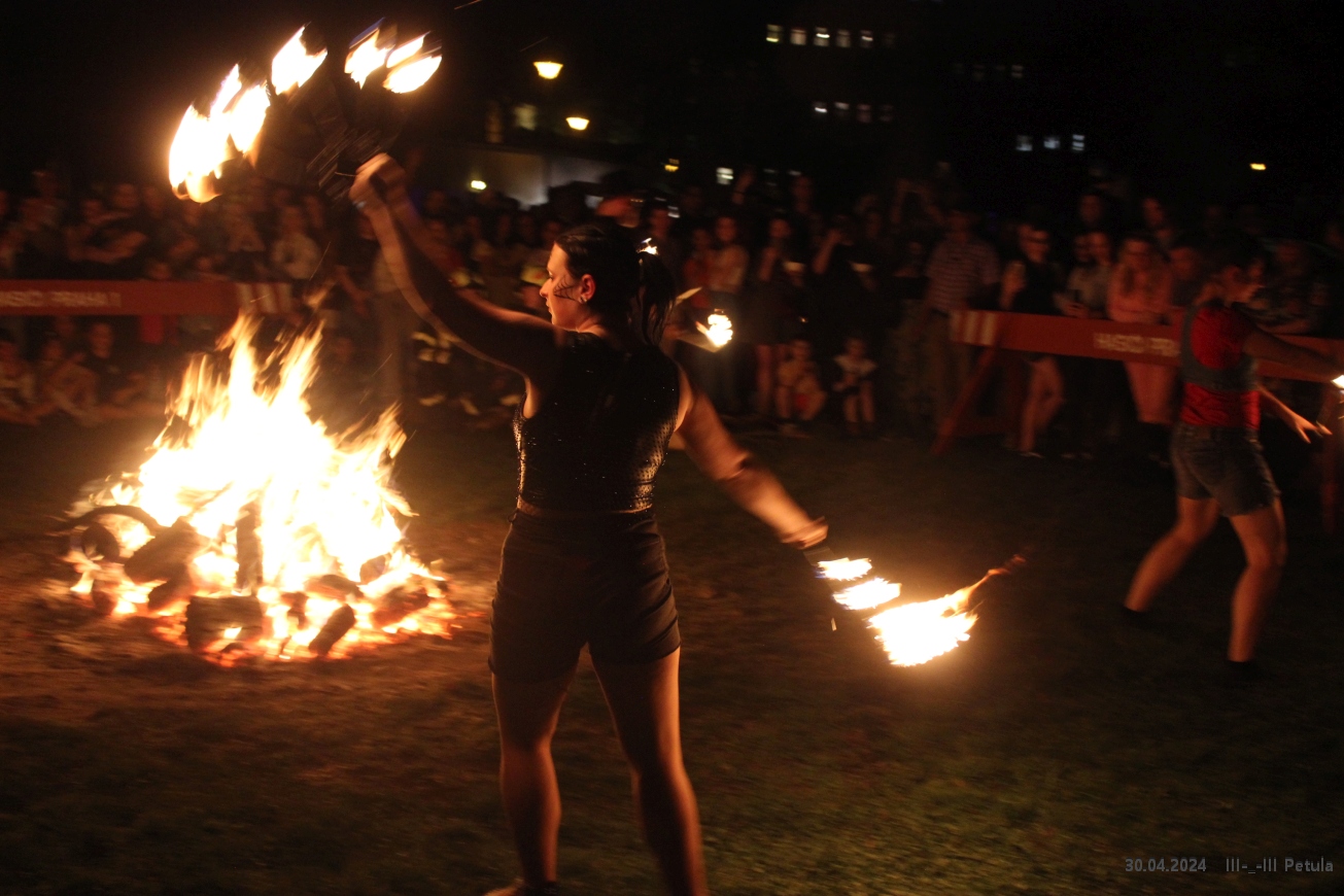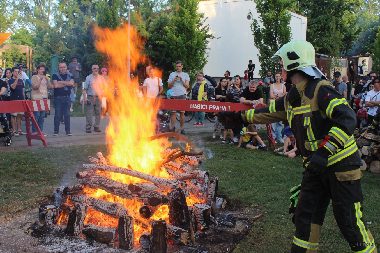 Večer vyvrcholil okolo 19*00, kdy byla ve Kampě zapálena hranice čarodějnice.