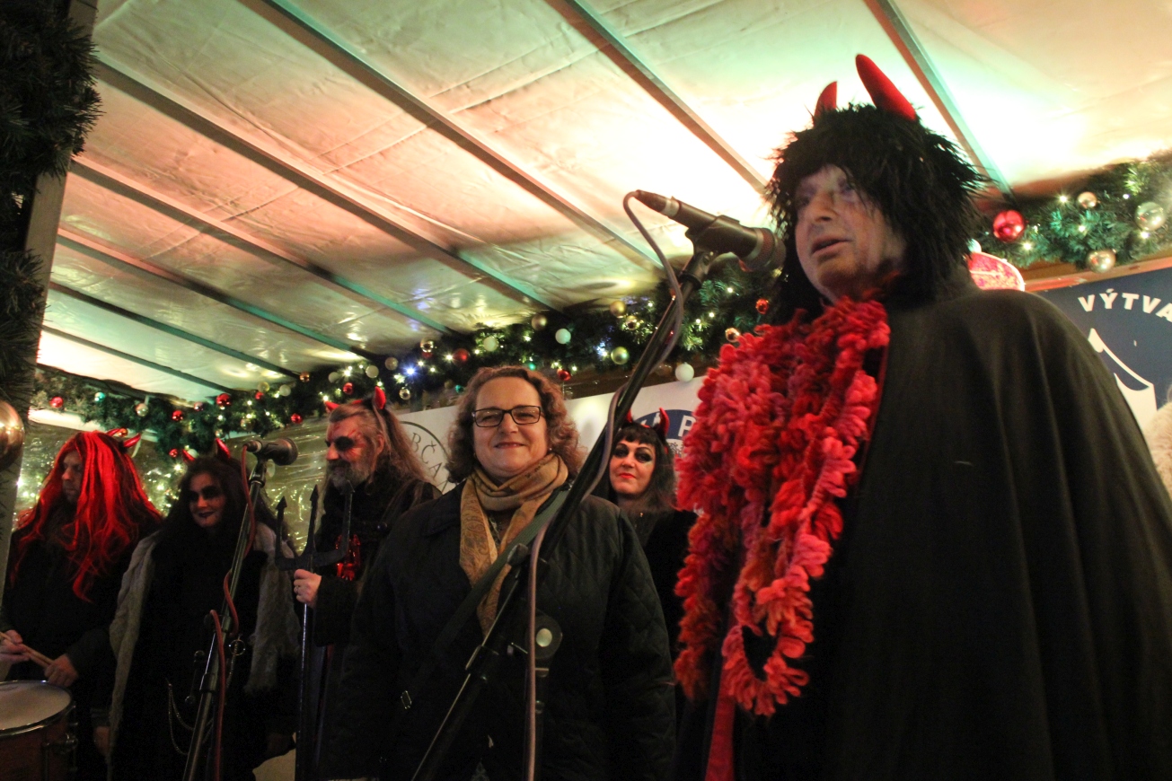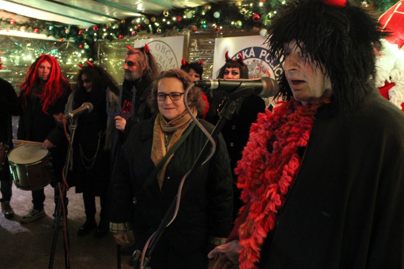 Štědrovečerní polévka: Ve spolupráci s MČ Praha 1 se rozlévala rybí polévka, kterou servírovala paní starostka Terezie Radoměřská a předseda výboru SNMP Jan Kotrbáček.