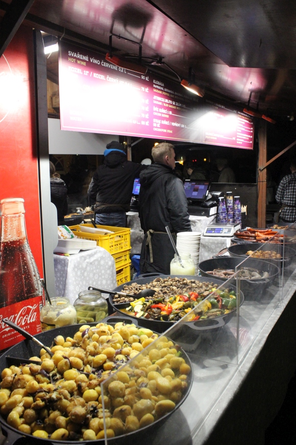 vánoční trhy s občerstvením, teplými nápoji a vánočními dárky