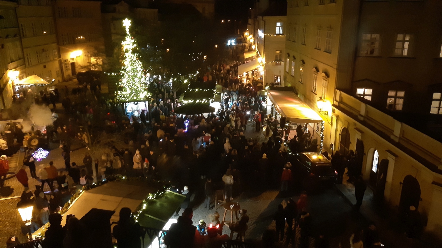 Program začal odpoledne, kdy z Malostranského náměstí vyšel průvod Mikulášů, andělů a čertů, který se přesunul na náměstí Na Kampě. Tato tradiční mikulášská skupina navodila slavnostní atmosféru a přivítala návštěvníky přicházející na vánoční akci. Následovalo slavnostní rozsvícení vánočního stromu, které symbolicky zahájilo předvánoční oslavy.