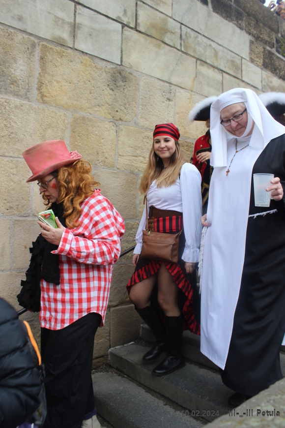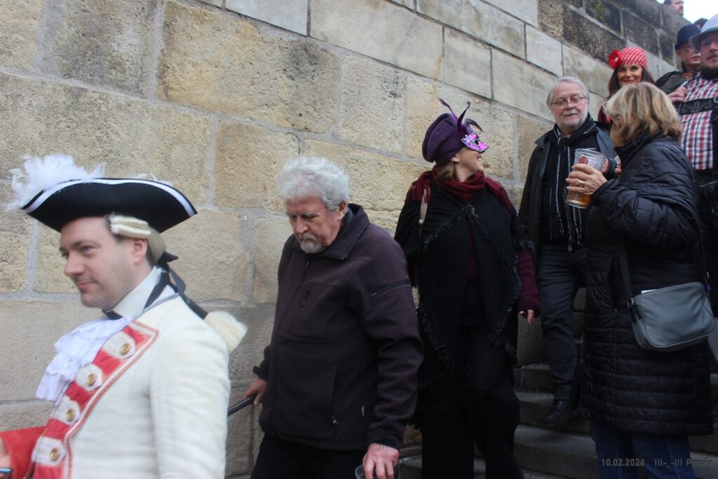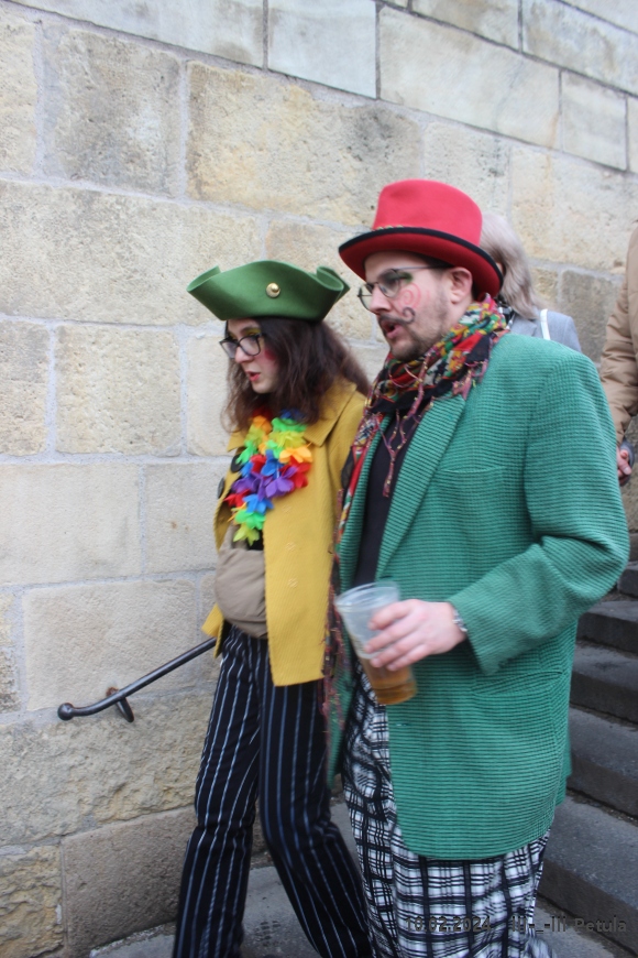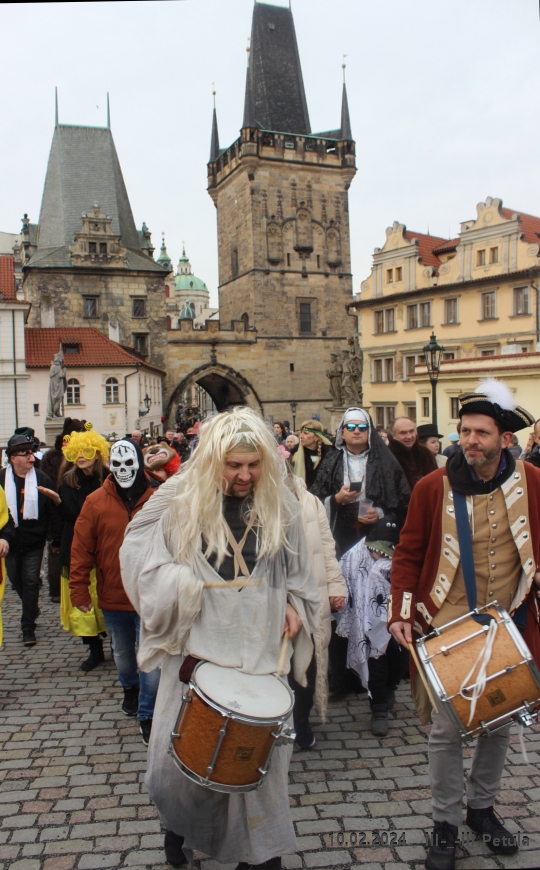 Program začal kolem 13:00 u hostince U Černého vola na Loretánském náměstí, kde se maskovaní účastníci sjeli a připravili na společný průvod. Ten s živou hudbou vyrazil tradiční trasou přes Malou Stranu směrem na náměstí Na Kampě, kde průvod skončil. Během pochodu se konaly tematické „aklimatizační zastávky“ v historických hostincích a putykách, které obohatily veselí a dodaly průvodu autentickou atmosféru.
